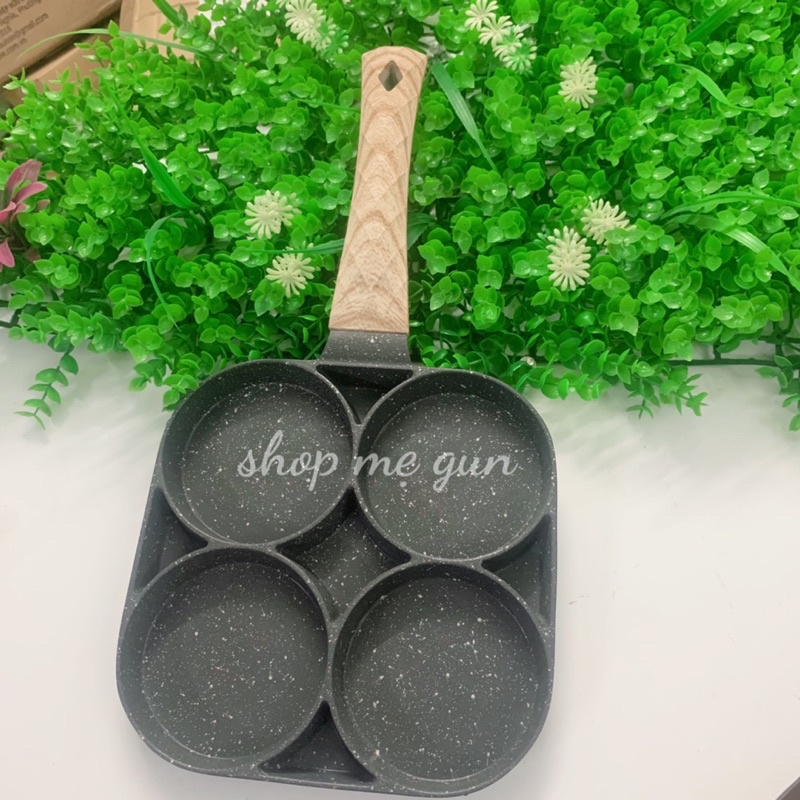 ✍Khuôn Chảo Chiên Rán Trứng Làm Bánh 4 Ngăn 4 Lỗ Chống Dính- Chống Dính Tay Cầm Gỗ