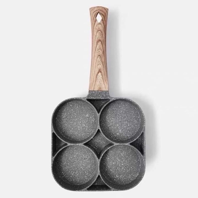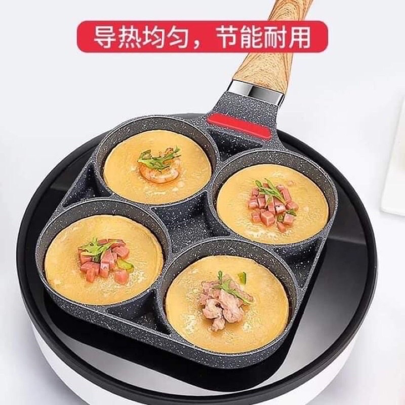 Chảo 4 Ngăn Chiên Trứng - Chảo Làm Bánh 4 Lỗ Chống Dính- Chống Dính Tay Cầm Gỗ=======================================