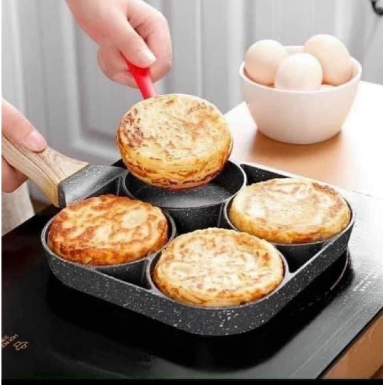 Chảo chia sẵn 4 ô tiện dụng, 1 lúc có thể chiên rán 4 món tuỳ theo sở thích . Các món có thể làm : thịt viên, chiên bánh, trứng ốp la, cơm setup 4 món, mì setup , mix food....
