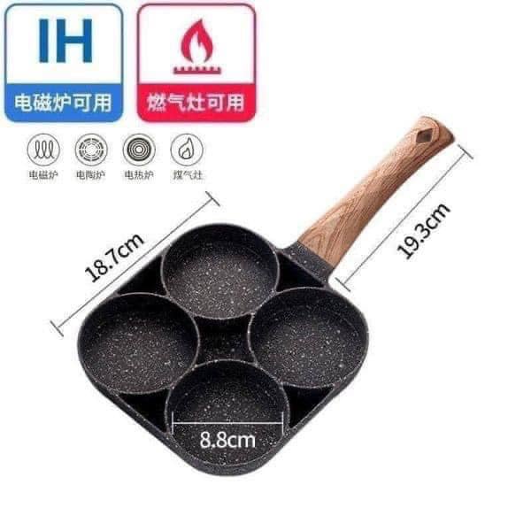 ✅ Chảo đá chống dính dày dặn, cùng một lúc có thể chiên rán 4 món.