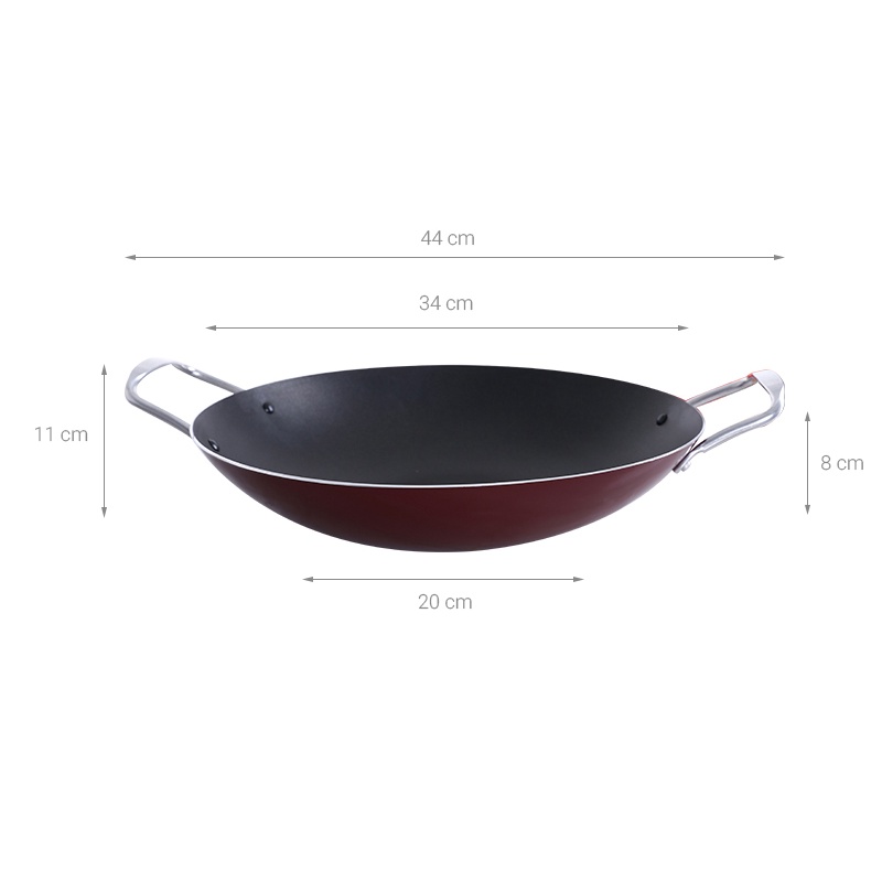 Sơn màu chịu nhiệt bên ngoài: Vỏ ngoài chảo được sơn một lớp chịu nhiệt màu đỏ chống bám bụi, hạn chế trầy xước, dễ dàng vệ sinh, tăng thẩm mỹ cho chảo.