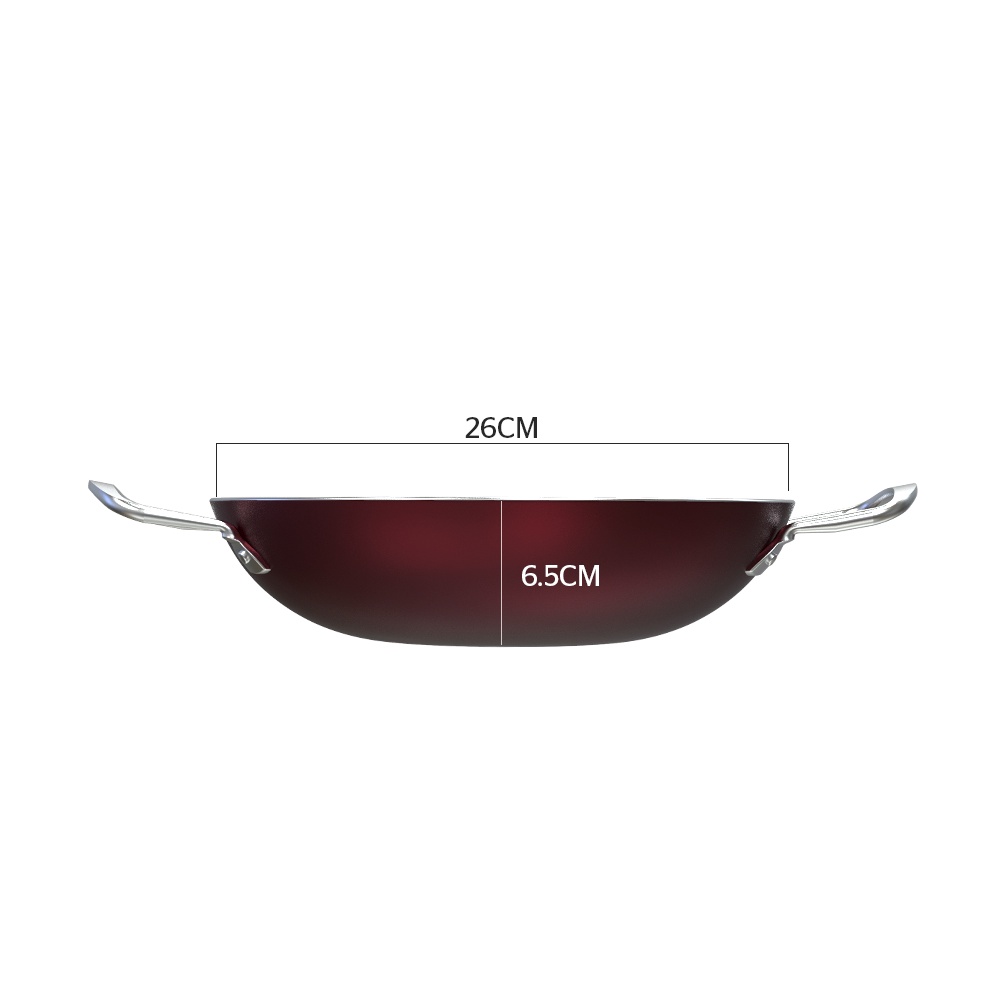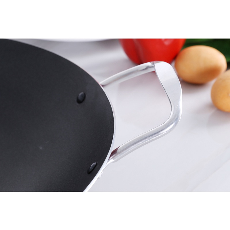 Quai chảo: Quai chảo được làm bằng nhôm siêu bền được tán đinh chắc chắn vào thân chảo giúp thao tác chiên xào món ăn dễ dàng, di chuyển an toàn.