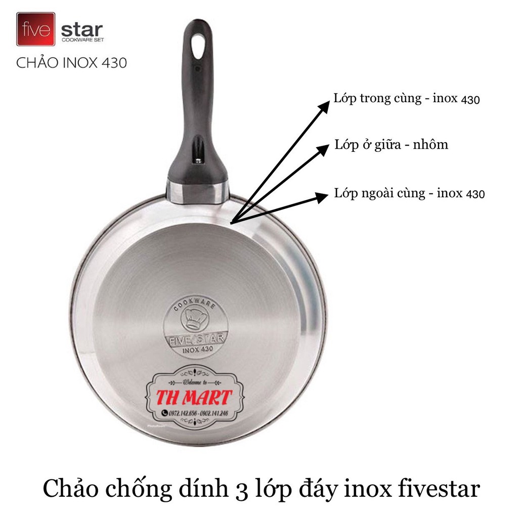 chảo bếp từ 3 đáy inox 430 cao cấp fivestar siêu bền đẹp (dùng cho mọi loại bếp )
