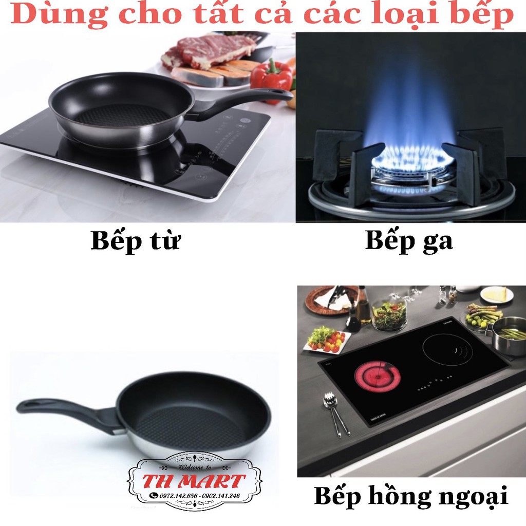 ☑ Đặc biệt hơn nữa là chảo không kén bếp, chảo sử dụng được trên tất cả các loại bếp như bếp gas, bếp từ và bếp hồng ngoại