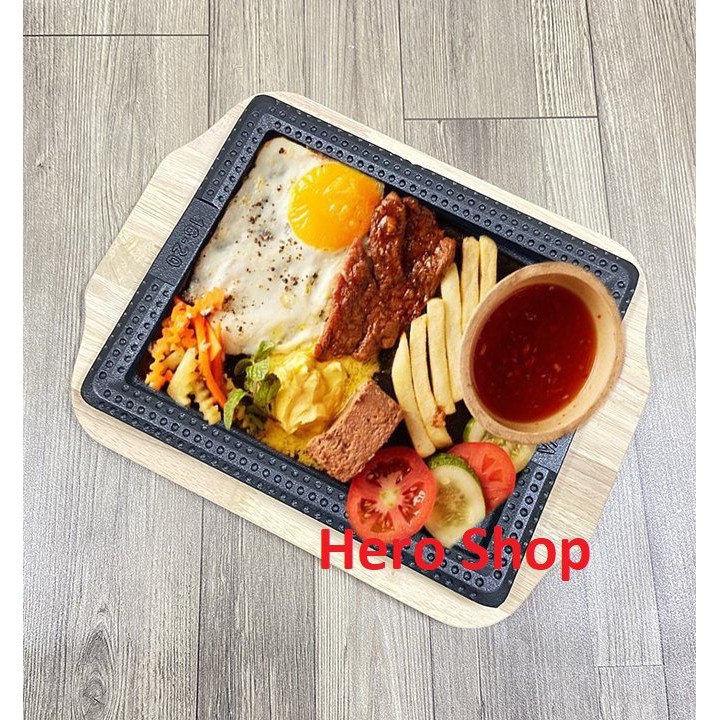 Bộ Chảo Bít Tết, Bánh Mì Chảo 2In1 Kèm Đế Gỗ Cao Cấp