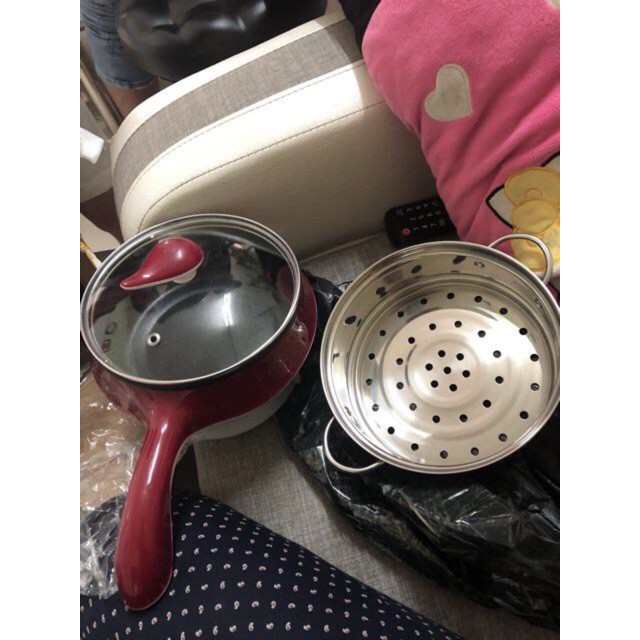 Chảo, Ca Mỳ, Nồi điện mini đa năng 2 tầng có tay cầm cao cấp