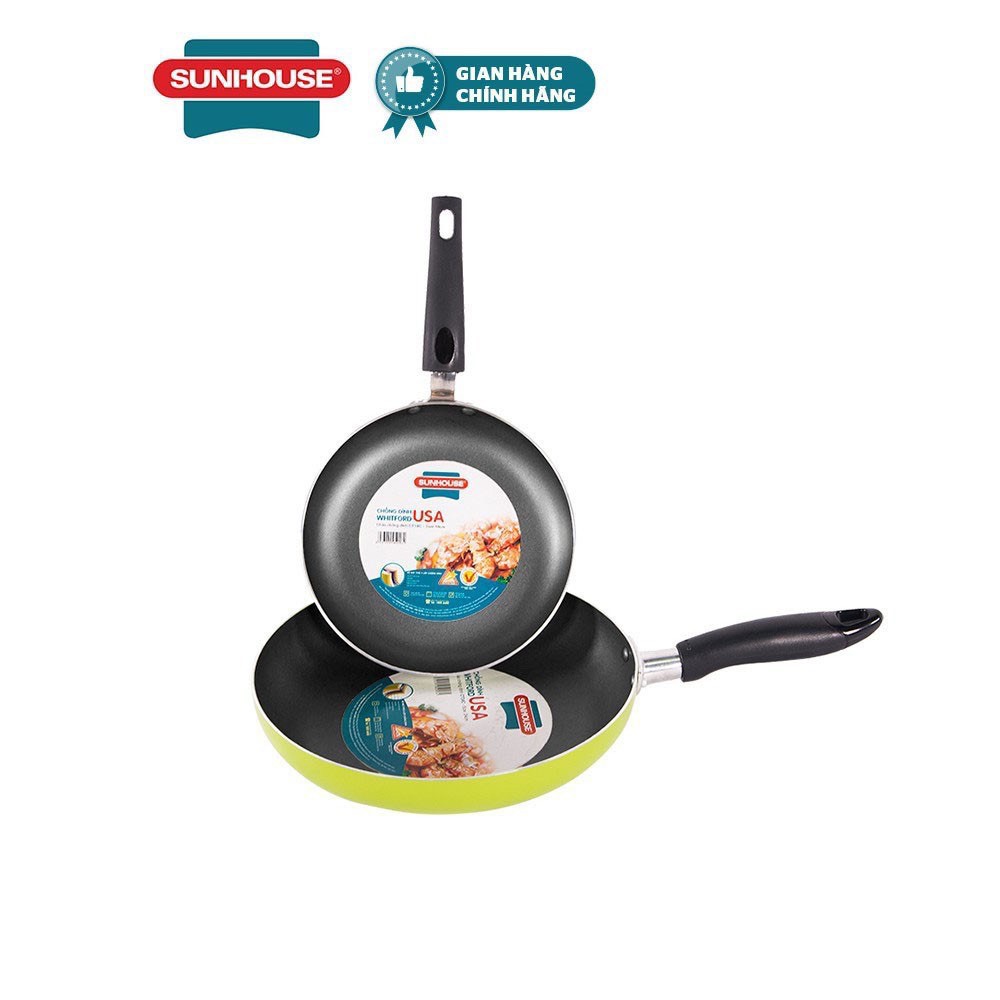 Nhà cửa & Đời sống > Dụng cụ nhà bếp > Nồi || chảo cặp nhôm trơn cạn Sunhouse phi 18 + 24 xanhCòn hàng
