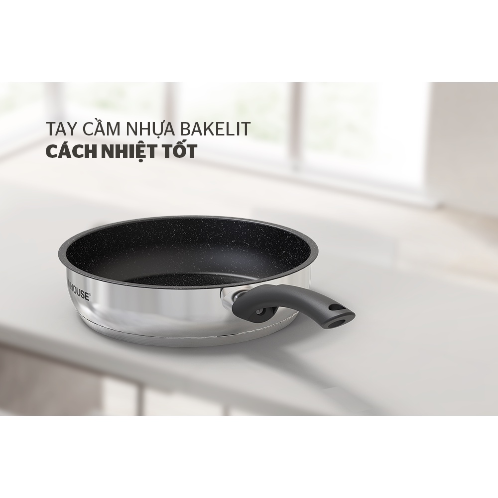 Chảo cạn inox 5 đáy chống dính SUNHOUSE IN20M4 20cm, IN24M4 24cm, IN26M4 26cm, IN28M4 28cm (Dùng bếp từ)