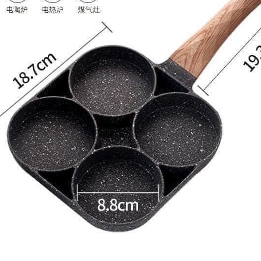 Chảo chia sẵn 4 ô tiện dụng, 1 lúc có thể chiên rán 4 món tuỳ theo sở thích . Các món có thể làm : thịt viên, chiên bánh, trứng ốp la, cơm setup 4 món, mì setup , mix food...