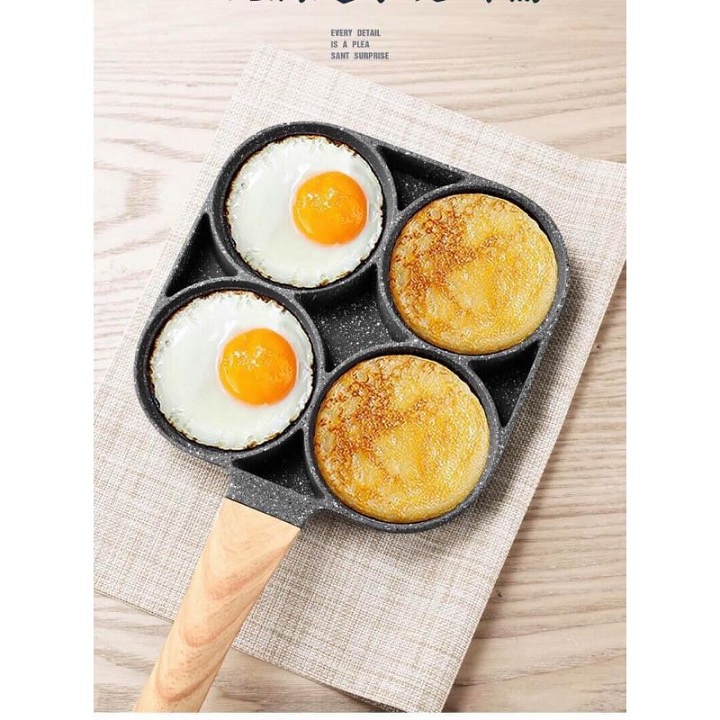 - Dùng bếp ga, từ thoải mái Chảo chia 4 ô tiện dụng, 1 lúc có thể chiên rán 4 món tùy theo sở thích, các món có thể làm thịt viên, chiên bánh, trứng ốp...