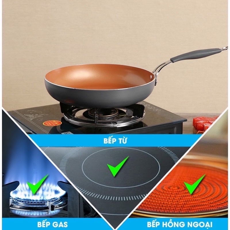 Sử dụng được trên nhiều loại bếp: Chảo dùng được trên bếp gas, bếp hồng ngoại, bếp từ.Thông số kỹ thuật