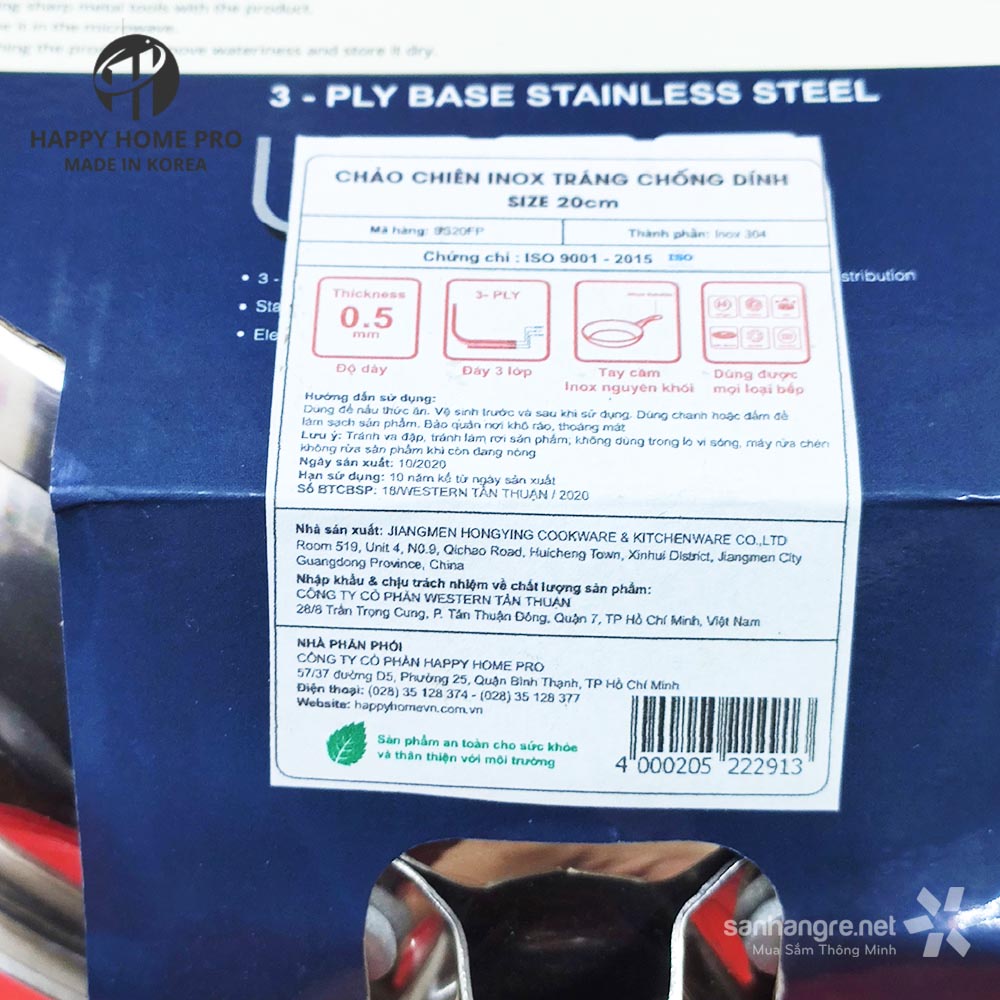 Giới thiệu Chảo chiên chống dính Inox 304 Happy Home Pro Hàn Quốc 3 lớp đáy từ size 20/24/26cm