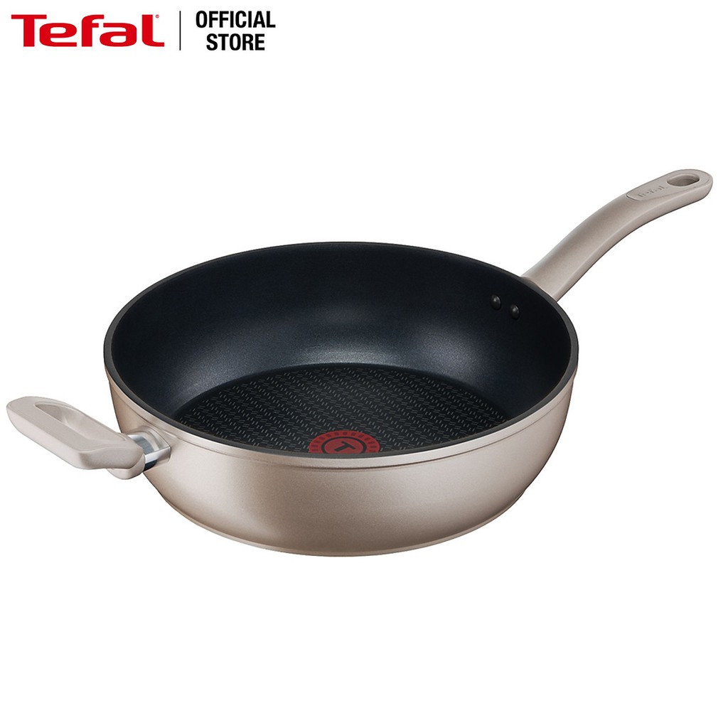 ĐẶC ĐIỂM NỔI BẬT CHẢO LÒNG SÂU TEFAL SENSATIONS 28CM– Chấm đỏ báo nhiệt sử dụng công nghệ Thermo-spot technology (biểu tượng chữ T chuyển từ đỏ tươi sang đỏ sậm khi nhiệt độ đạt 180 độ C) lý tưởng cho món ăn ngon