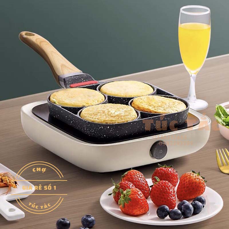 Nay đã có chảo 4 khuôn tha hồ chiên nhanh gọn mà lại thành khuôn đẹp mât.