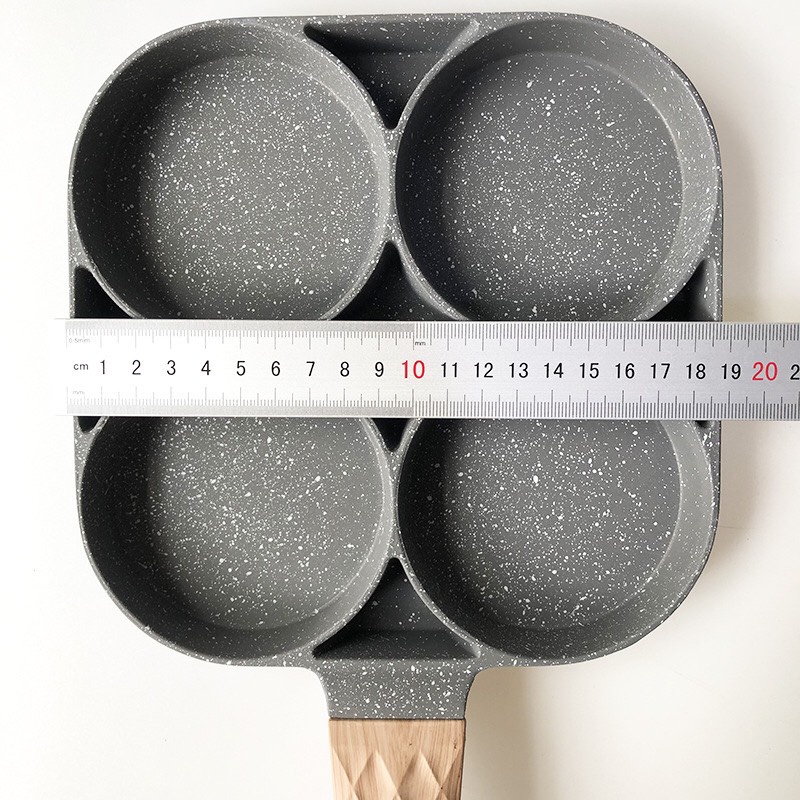 Chảo Chiên Rán Trứng Làm Bánh 4 Ngăn 4 Lỗ Chống Dính. Tay Cầm Gỗ Dùng Cho Mọi Loại Bếp
