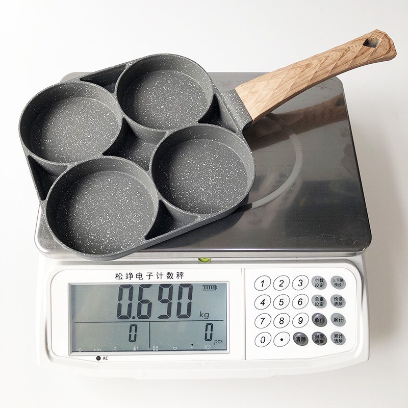 Nhà cửa & Đời sống > Dụng cụ nhà bếp > Chảo || Chảo Chiên Rán Trứng Làm Bánh 4 Ngăn 4 Lỗ Chống Dính. Tay Cầm Gỗ Dùng Cho Mọi Loại BếpCòn hàng