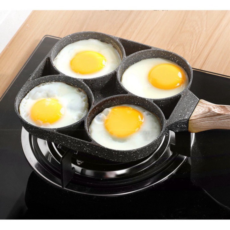 Chảo Chiên Rán Trứng Làm Bánh 4 Ngăn FREESHIP Chảo 4 Lỗ Chống Dính- Chống Dính Tay Cầm Gỗ