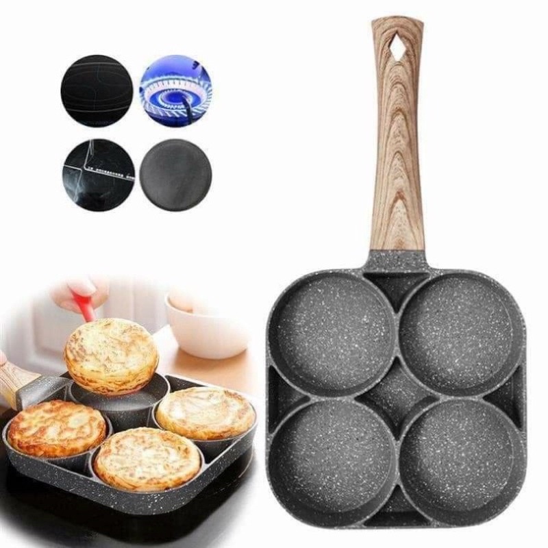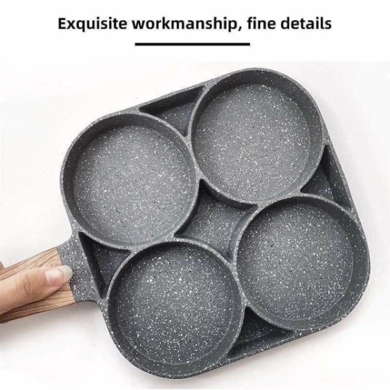 Chảo chia sẵn 4 ô tiện dụng, 1 lúc có thể chiên rán 4 món tuỳ theo sở thích . Các món có thể làm : thịt viên, chiên bánh, trứng ốp la, cơm setup 4 món, mì setup , mix food....