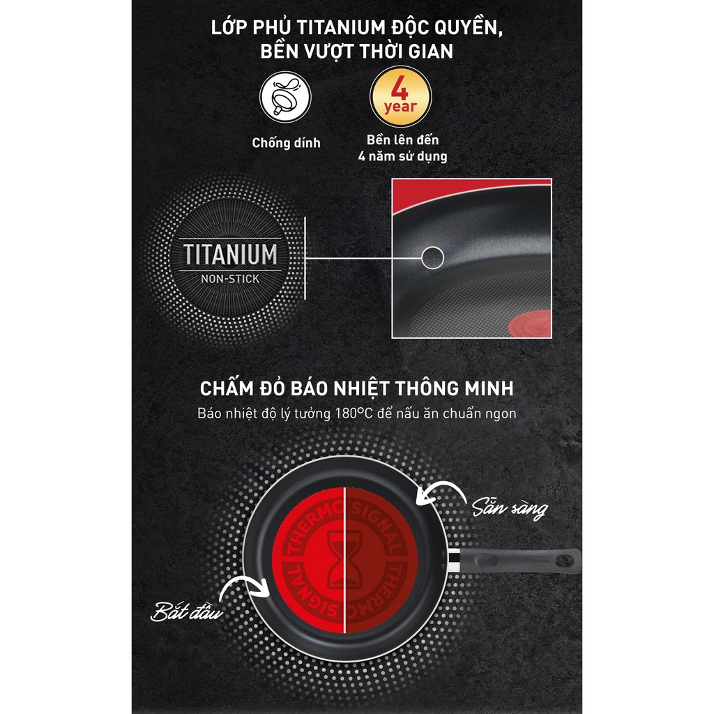 - LỚP PHỦ TITANIUM Bền chắc với hơn 16,000 lần chà nhám.- Lớp phủ Titanium nonstick mang lại khả năng chống dính tuyệt vời và độ bền vượt trội, có thể sử dụng ít dầu khi nấu ăn.