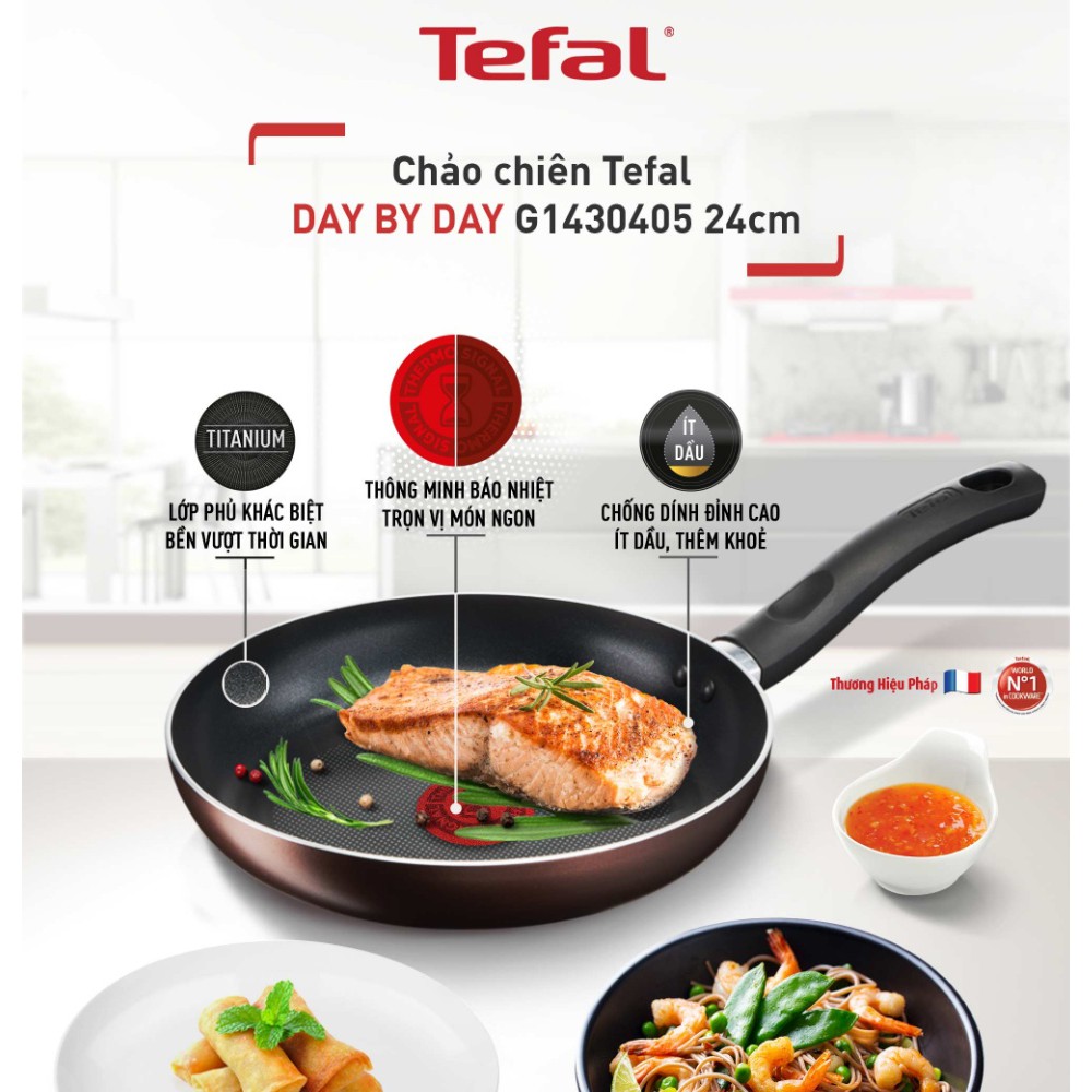 Giới thiệu Chảo chiên Tefal Day By Day G1430605 28cm [Hàng chính hãng] Thương hiệu Pháp - Chống dính Titanium bền bỉ và an toàn