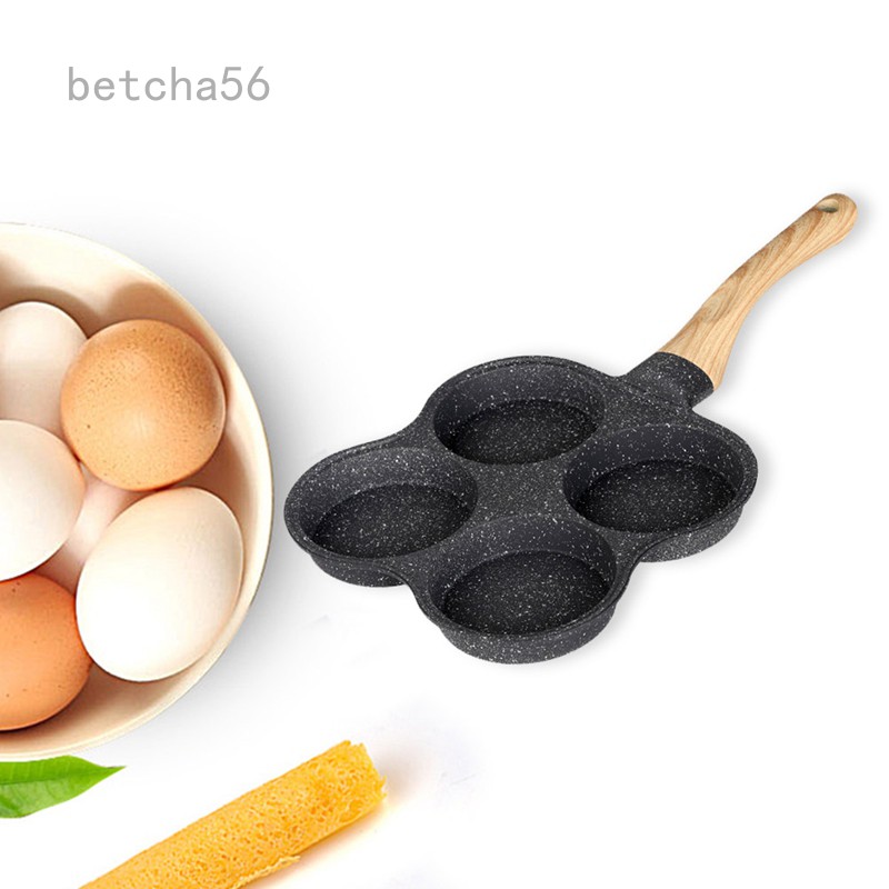 Chảo Chiên Trứng 4 Ngăn Chống Dính Tay Cầm Bằng Gỗ Tiện Dụng Cho Nhà Bếp