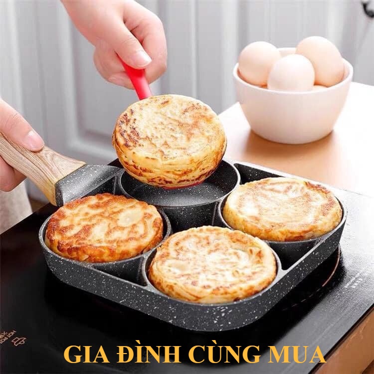 Chảo Chiên Trứng 4 Ngăn Chống Dính Đa Năng - Chảo Vân Đá Chiên Rán Làm Bánh 4 Ngăn 4 Lỗ Chống Dính | giadinhcungmua