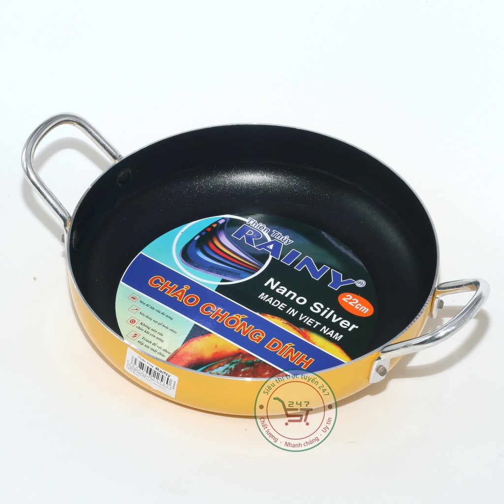 + Mặt trong chảo ngoài phủ lớp chống dính cao cấp, mặt trên cùng còn phủ một lớp ion bạc bằng công nghệ nano khử trùng đảm bảo an toàn vệ sinh cho gia đình. Lớp chống dính có khả năng chịu được nhiệt độ cao gấp nhiều lần so với nhiệt độ nấu nướng nên không có khả năng bị bong tróc khi đang sử dụng.