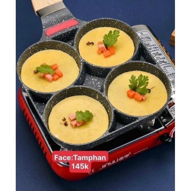 Chảo chiên trứng 4 ngănKhuôn Chảo Chiên Rán Trứng Làm Bánh 4 Ngăn 4 Lỗ Chống Dính- Chống Dính Tay Cầm Gỗ