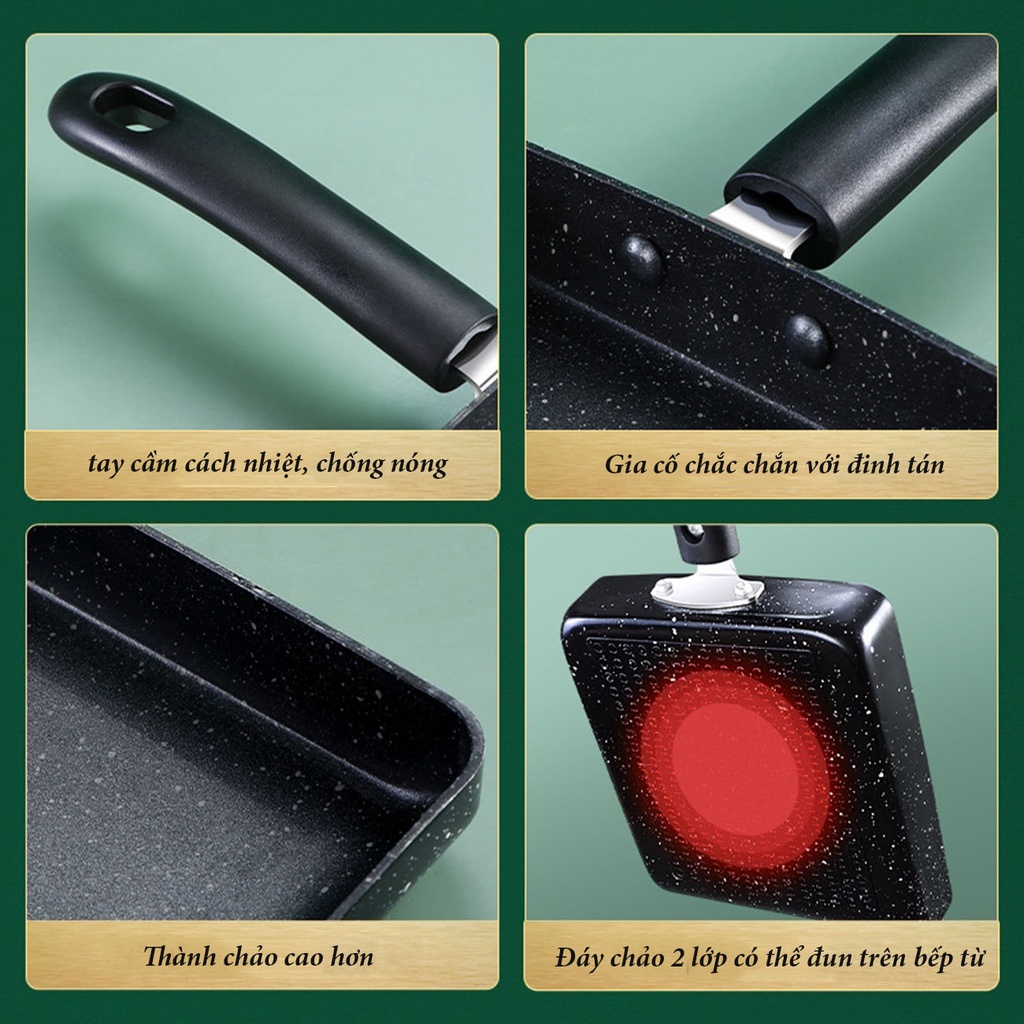 Chảo chiên trứng cuộn - chảo đá chống dính hình vuông