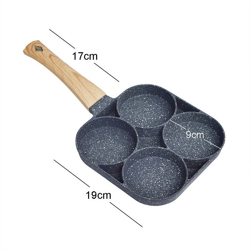 Chảo Chiên Trứng, Làm Bánh 4 Ngăn Chống Dính - Tay Cầm Gỗ Cách Nhiệt, Đá Maifan Siêu bền