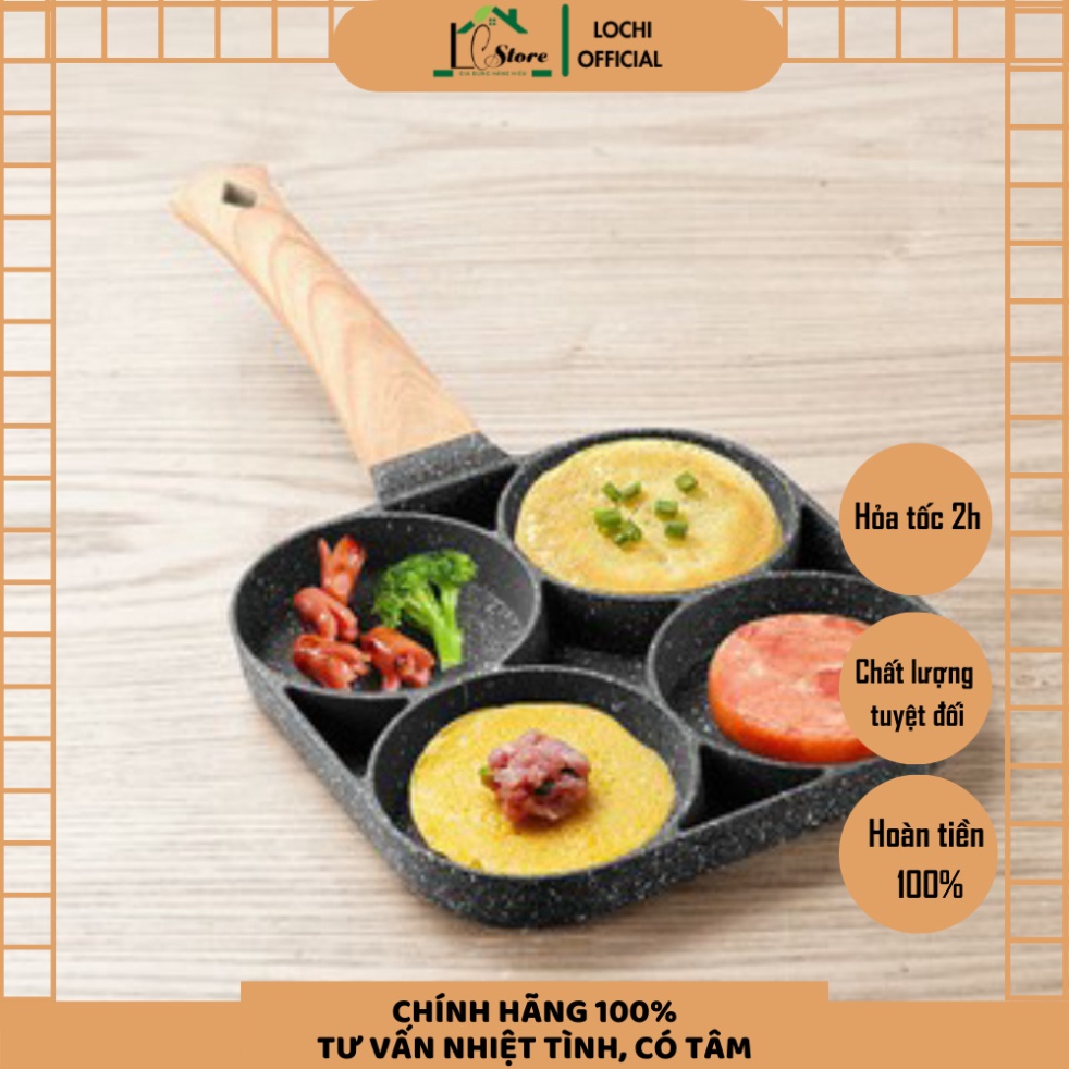 Chảo Chiên Trứng, Làm Bánh 4 Ngăn, Vân Đá, Đá Maifan Siêu Bền, sử dụng mọi loại bếp Lochi Store