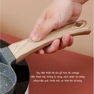 + Cán chảo sử dụng nhựa tổng hợp/cán gỗ cao cấp có thể chịu được nhiệt độ 180 độ C, cách nhiệt 100%