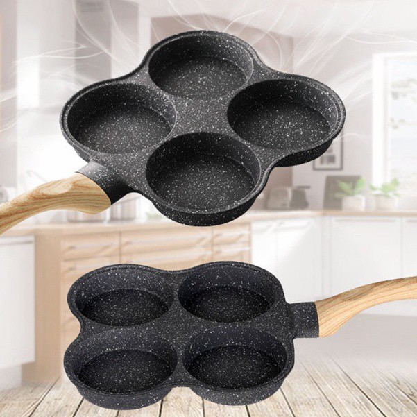 Nhà cửa & Đời sống > Dụng cụ nhà bếp > Chảo || Chảo Chiên Trứng, Làm Bánh 4 Ngăn Chống Dính - Tay Cầm Gỗ Cách Nhiệt, Đá Maifan Siêu Bền, Dễ Dàng vệ Sinh Sạch SẽCòn hàng