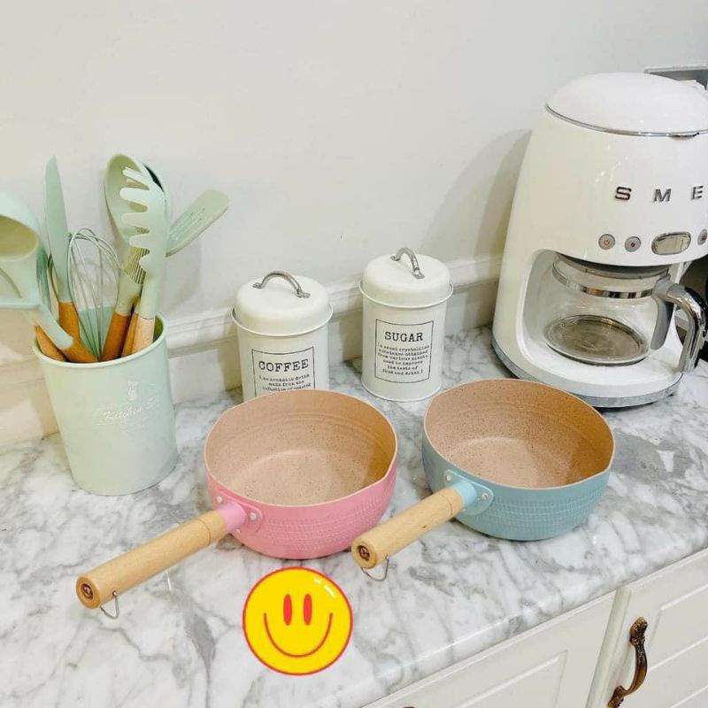 - Chảo sâu lòng màu xanh, màu hồng cực kỳ dễ thương
