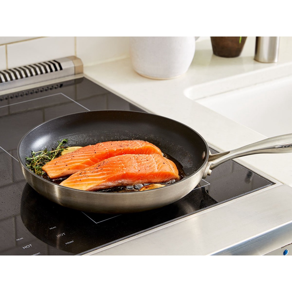 Chảo chống dính Scanpan CTX được thiết kế bên ngoài bằng inox mờ sang trọng, kiểu dáng đẹp mắt giúp không gian bếp nhà bạn thật hiện đại và phong cách.