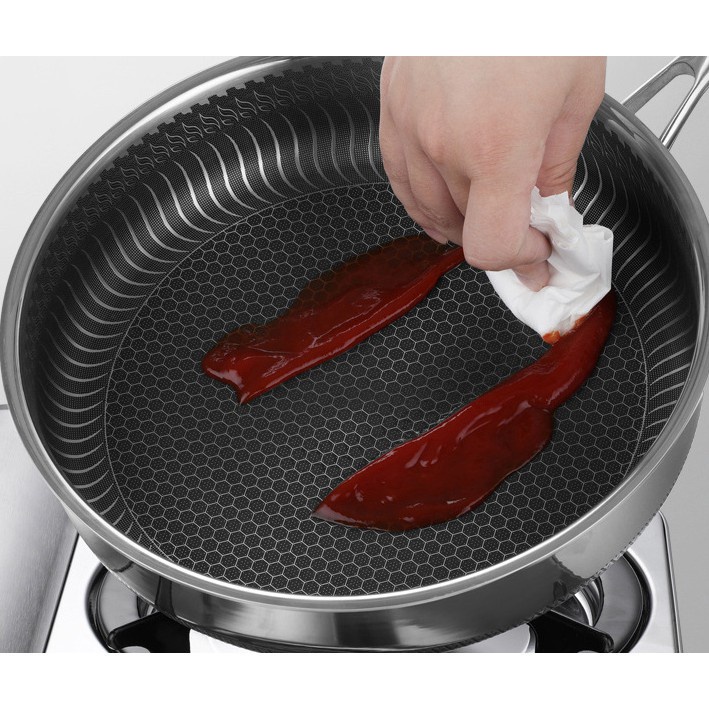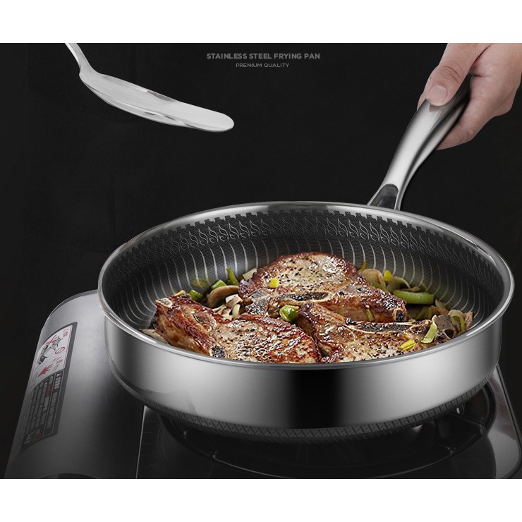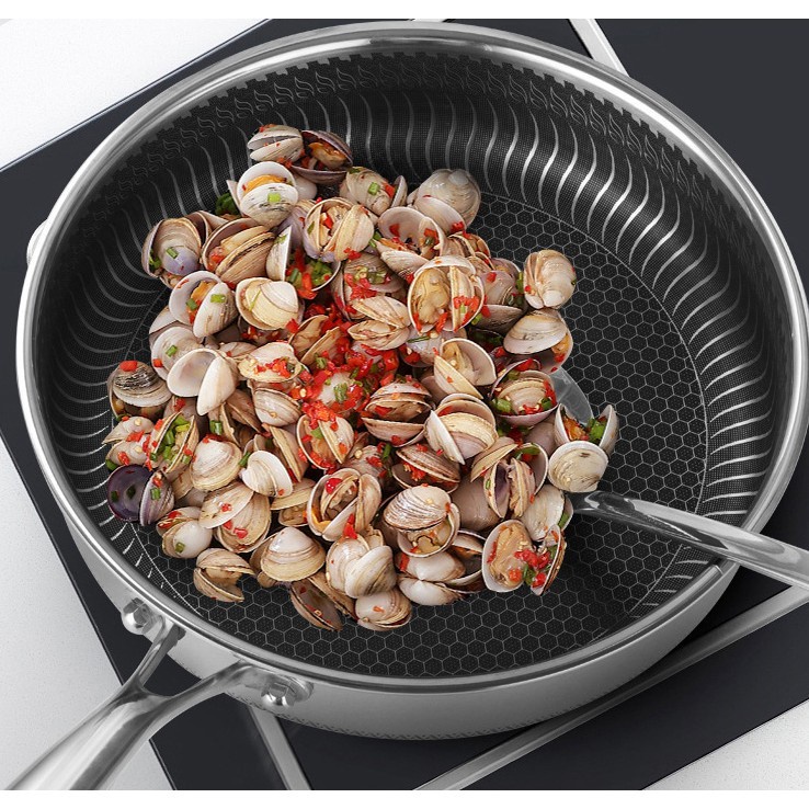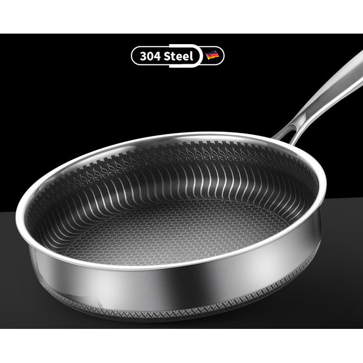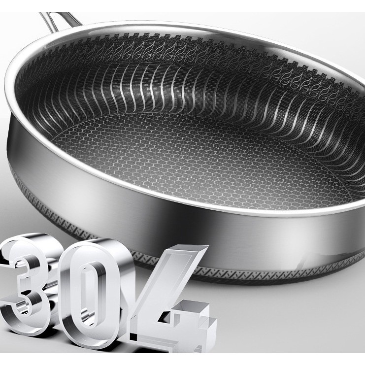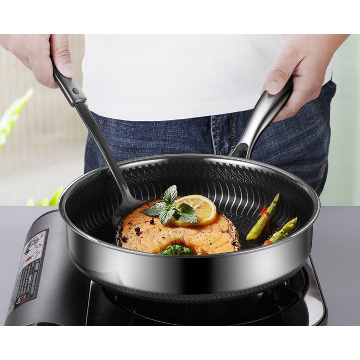 Chảo chống dính 2 mặt 5 lớp inox 304 công nghệ khắc laser tổ ong 28cm đáy bằng (chuyên rán, áp chảo) nội địa Trung Quốc