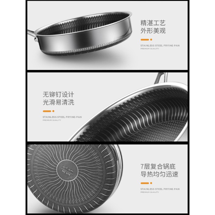 Chảo chống dính 2 mặt 5 lớp inox 304 công nghệ khắc laser tổ ong 28cm ĐÁY BẰNG (chuyên rán, áp chảo) hàng nội địa Trung QuốcChảo sản xuất theo công nghệ mới "KHÔNG ĐÁY" 5 lớp: