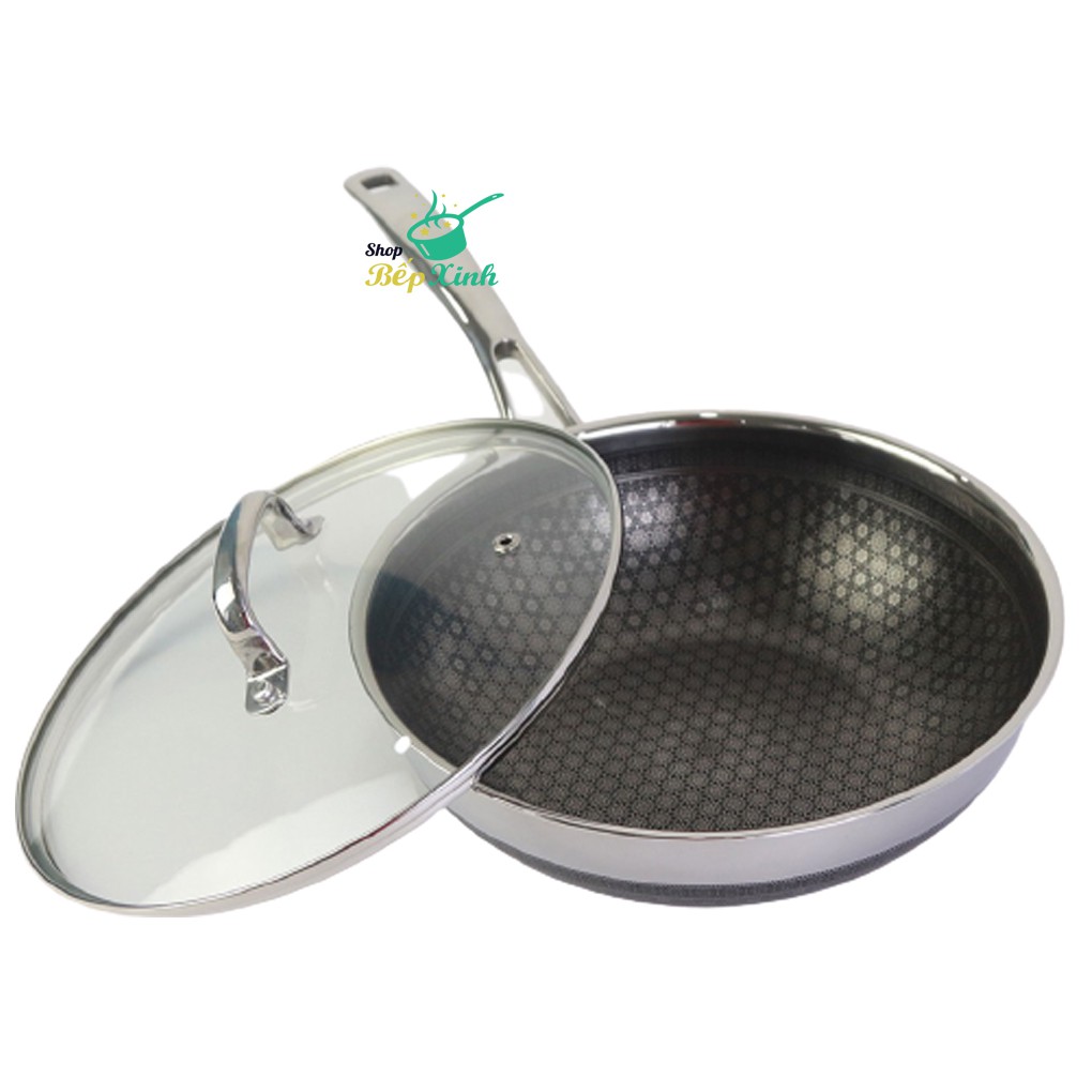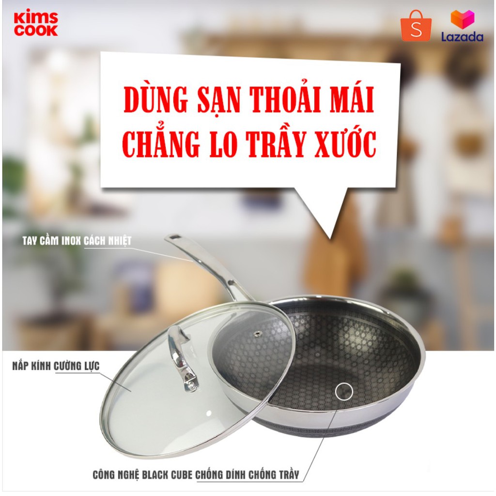 Chảo chống dính 2 mặt sâu lòng inox 304 BLACKCUBE KimsCook dòng noonsong 3 lớp đúc liền đáy liền cào không xước,siêu bềnShop có 2 loại : có nắp kính và không nắp kính