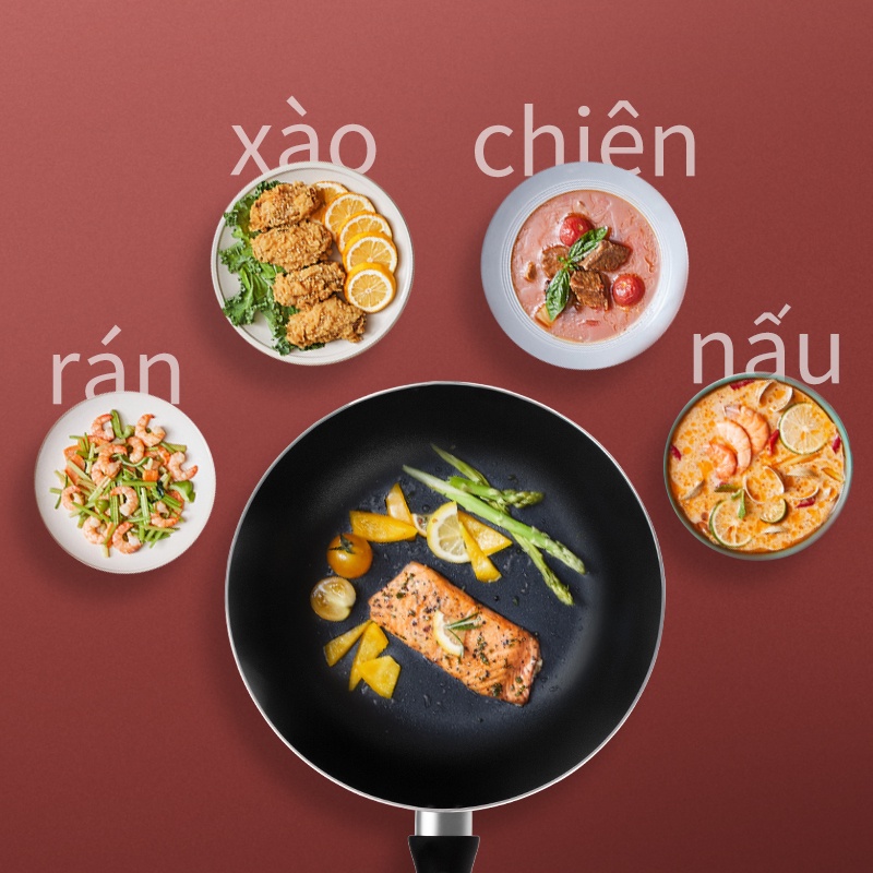 - Lớp chống dính 100% không chứa hóa chất PFOA, không chứa chì và cadmium, nấu ăn lành mạnh hơn.