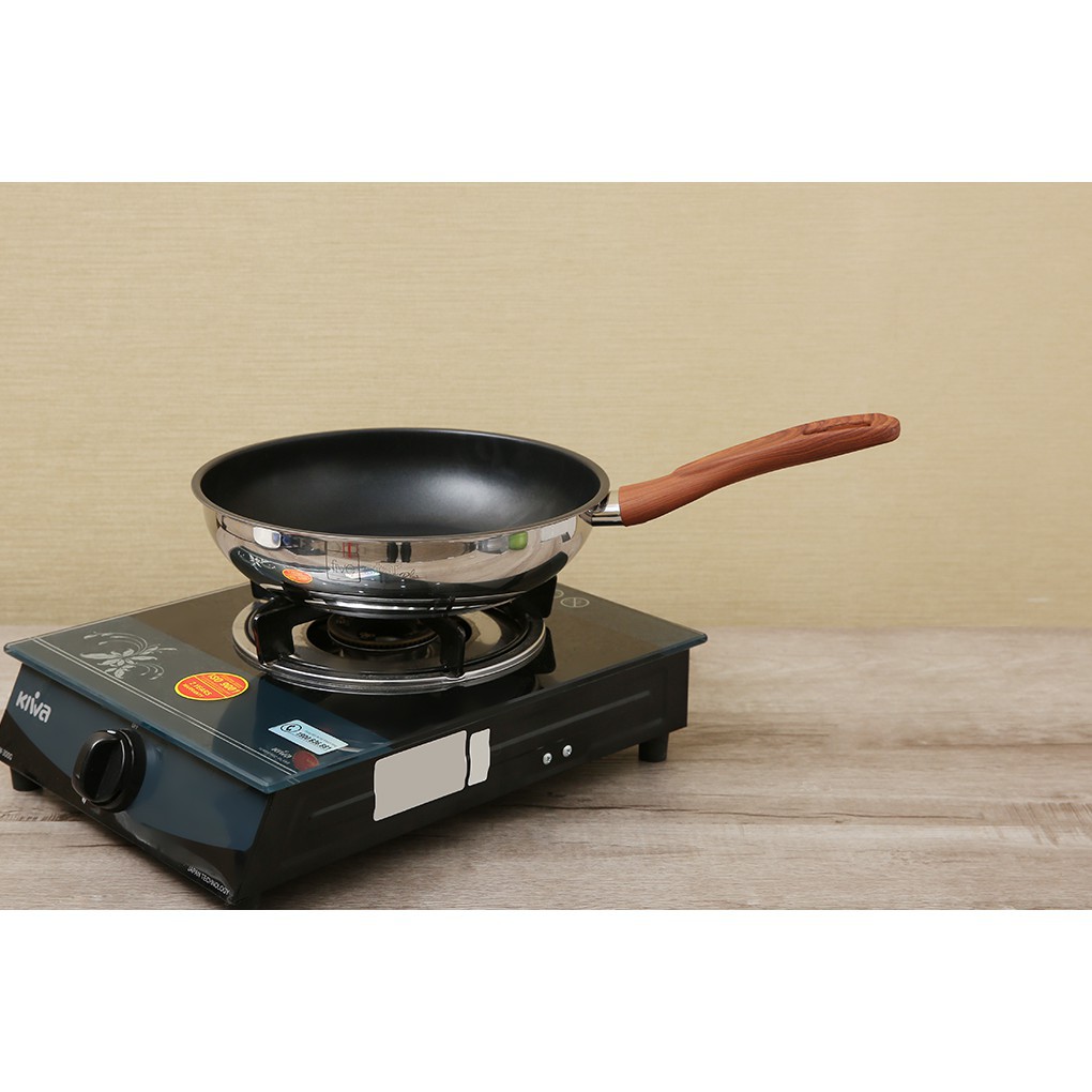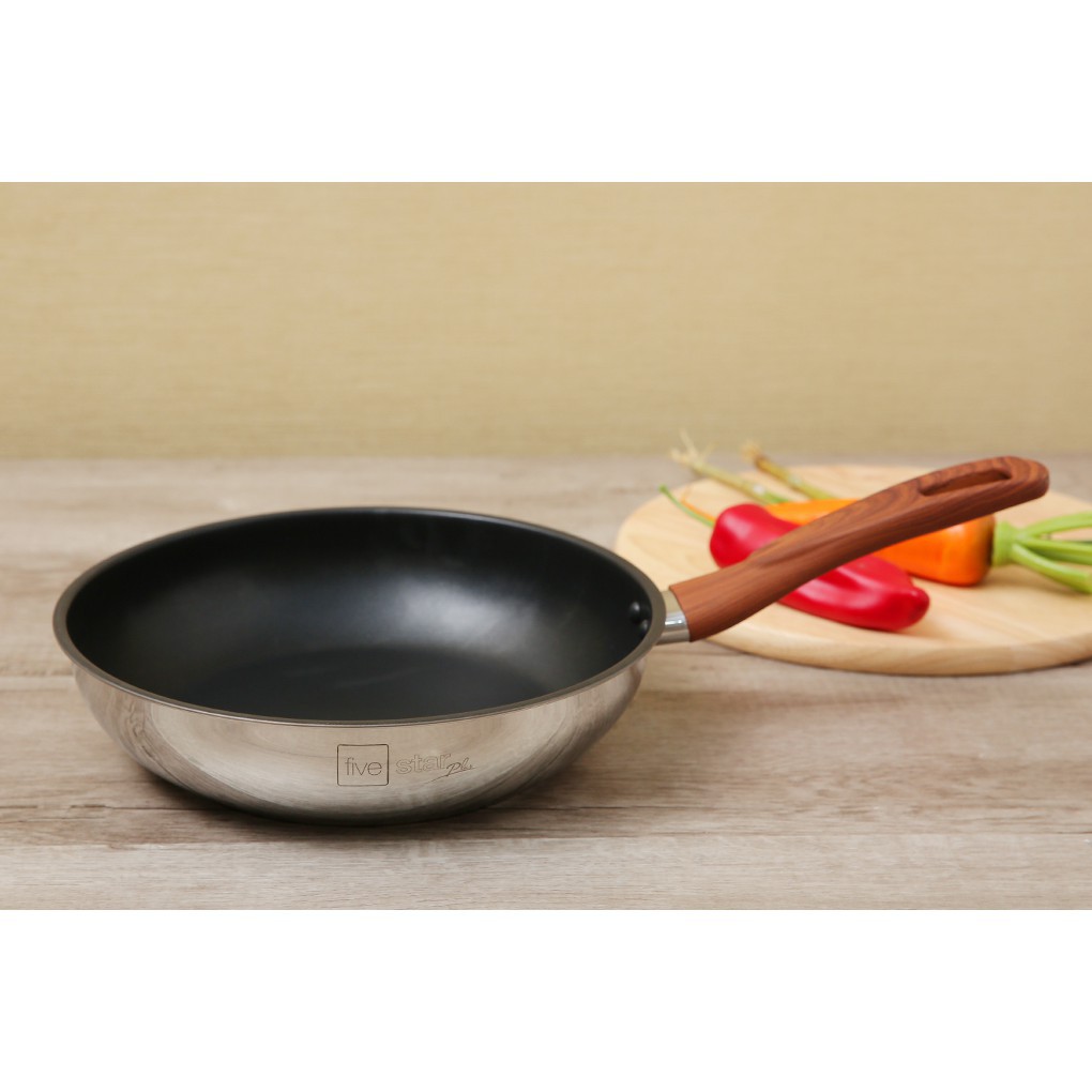 #chảochốngdínhChảo chống dính 3 đáy inox 304 Fivestar quai gỗ cách nhiệt - sử dụng bếp từ ( 26cm / 28cm )
