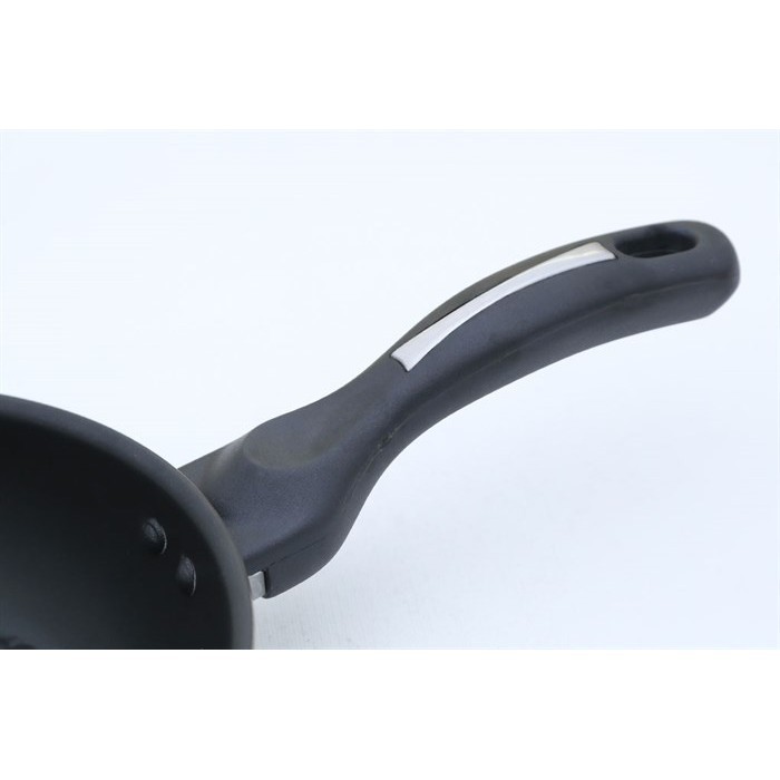 Tay cầm dài bọc nhựa cách nhiệt để đảm bảo an toàn cho người sử dụng, ốc vít được cố định chắc chắn. Móc treo tiện bảo quản chảo.