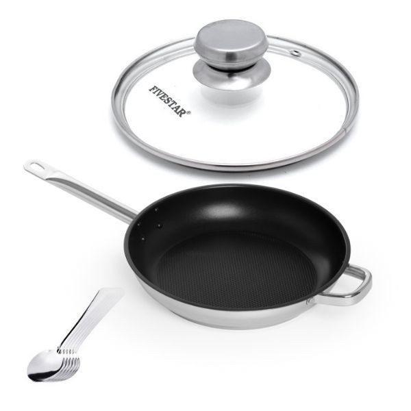 Nhà cửa & Đời sống > Dụng cụ nhà bếp > Chảo || [Mã LIFEMALL253 giảm 100K đơn 250K] Chảo chống dính 3 đáy inox 430 Fivestar Standard và nắp kính tặng 5 muỗng ăn (32cm)Còn hàng