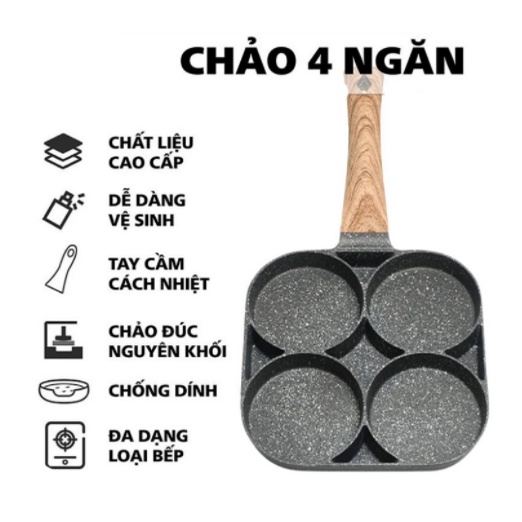 Chảo Chống Dính 4 Ngăn - Chảo Inox Chống Dính dùng được bếp từ và bếp ga, lòng sâu 4 trong 1 chiên trứng, nướng bánh