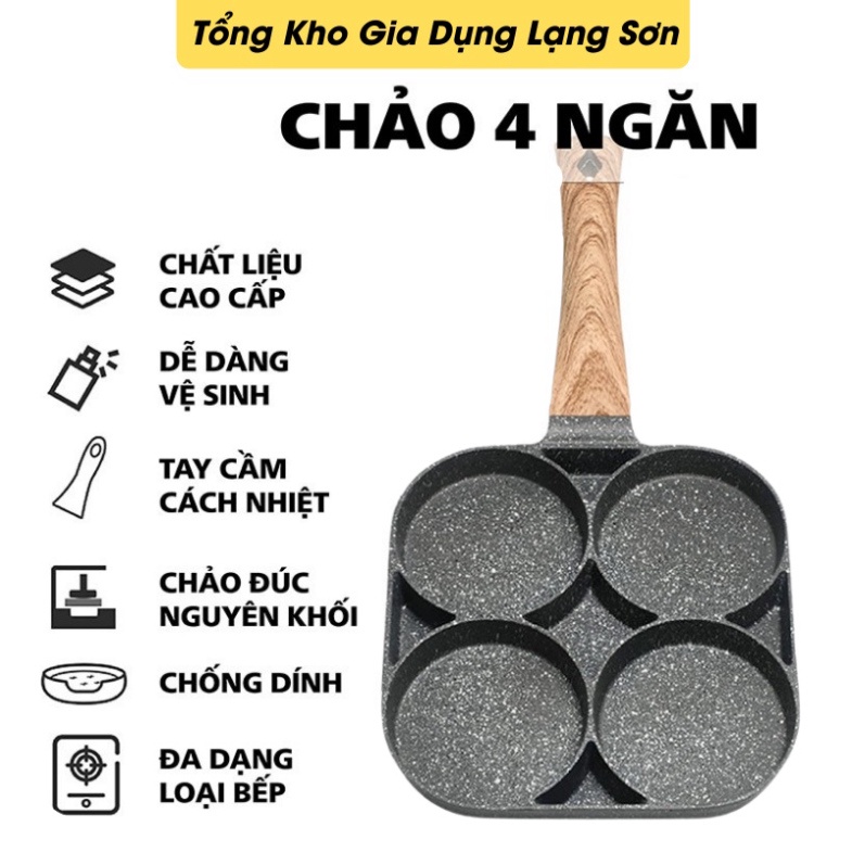 Nhà cửa & Đời sống > Dụng cụ nhà bếp > Chảo || Chảo Chống Dính 4 Ngăn - Chảo Inox Chống Dính dùng được bếp từ và bếp ga, lòng sâu 4 trong 1 chiên trứng, nướng bánhCòn hàng