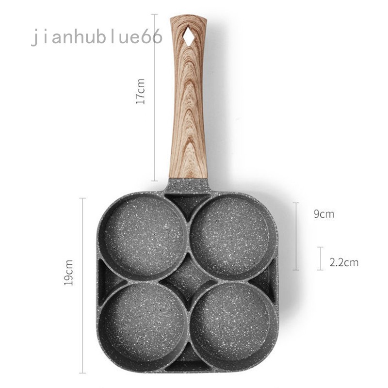 * Chảo Chiên Rán Trứng Làm Bánh 4 Ngăn 4 Lỗ Chống Dính- Chống Dính Tay Cầm Gỗ