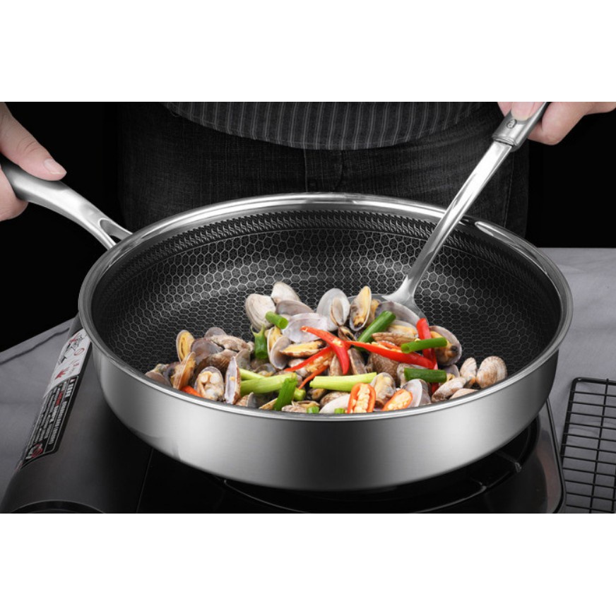 Chảo chống dính 5 lớp inox 304 công nghệ khắc laser tổ ong 28cm đáy bằng (chuyên rán, áp chảo) hàng nội địa Trung Quốc