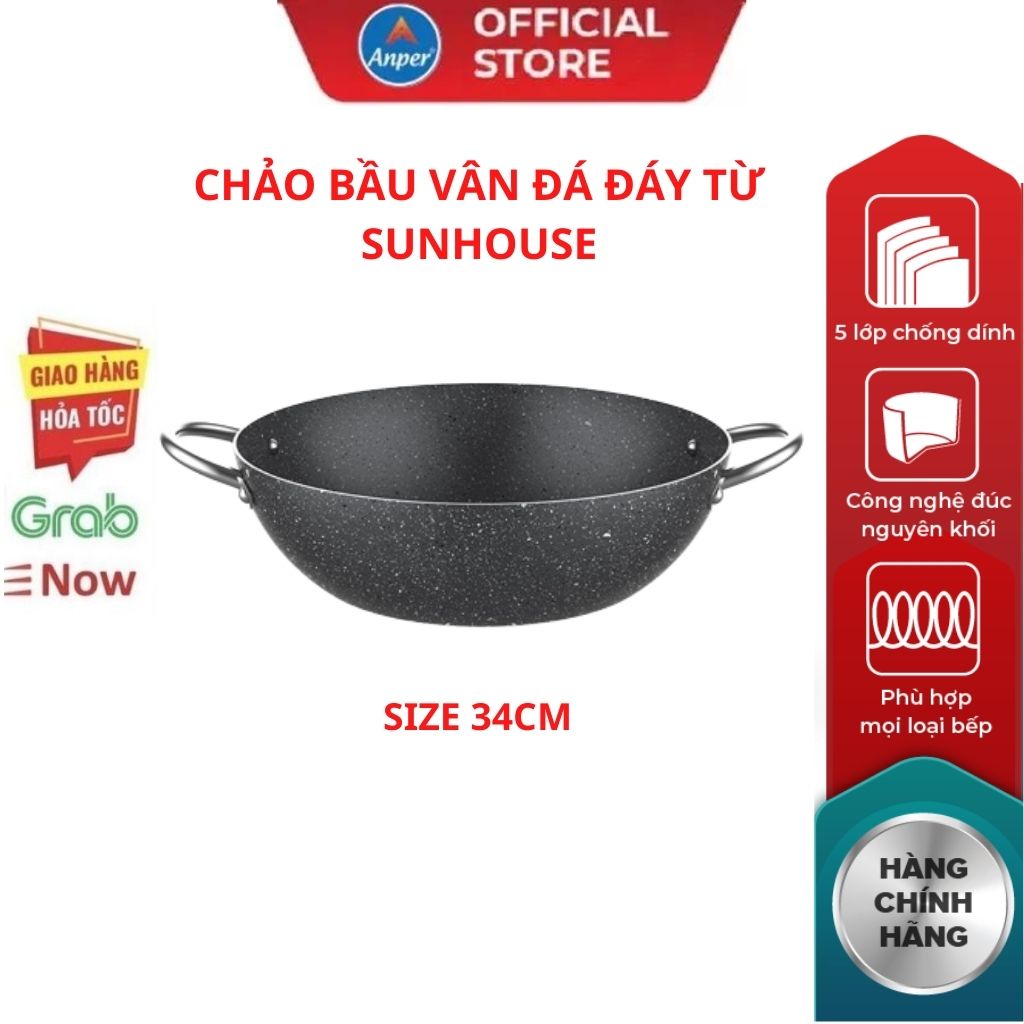 Nhà cửa & Đời sống > Dụng cụ nhà bếp > Chảo || Chảo chống dính bầu sâu lòng 2 quai SUNHOUSE 34cm 36cm siêu dày (dùng được mọi loại bếp) Mới 100% Chính Hãng Bảo HànhCòn hàng