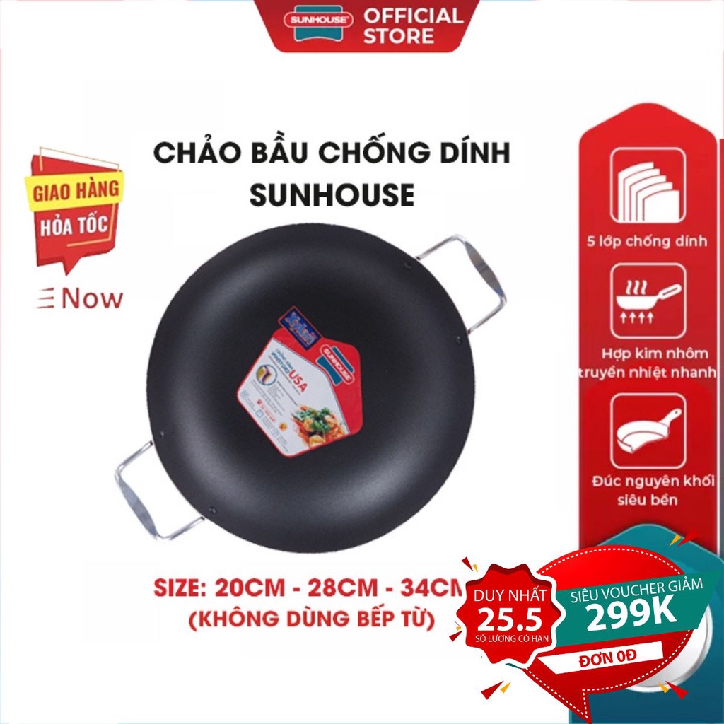 Nhà cửa & Đời sống > Dụng cụ nhà bếp > Chảo || Chảo chống dính bầu SUNHOUSE SHG1220R-SHG1234R-2022 chảo sâu lòng hợp kim nhôm tay cầm chịu nhiệt chống trầy xướcCòn hàng