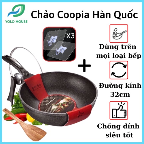 Nhà cửa & Đời sống > Dụng cụ nhà bếp > Chảo || Chảo chống dính bếp từ có nắp kính, Chảo coopia Hàn Quốc size 32 cm siêu chống dính có nắp tiện dụngCòn hàng