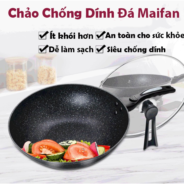 - Chảo đá sâu lòng giúp chiên xào nhiều món nhanh mà không tốn thời gian.